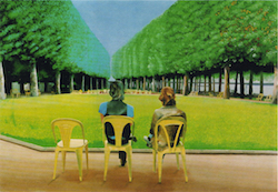 Ο ζωγραφικός πίνακας που πλαισιώνει τη σελίδα ("Le parc des Sources", 1970) είναι έργο του, βρετανού, David Hockney