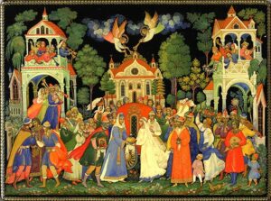 Στην εικαστική πλαισίωση της σελίδας, σύγχρονη ναΐφ ρωσική εικονογράφηση.