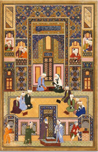 Στην εικαστική πλαισίωση της σελίδας: "Η συνάντηση των θεολόγων". Έργο ισλαμικής τέχνης (1540-50).