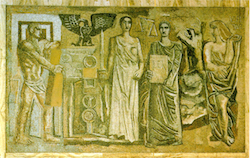 Ο ζωγραφικός πίνακας ("Η Δικαιοσύνη ανάμεσα στη Νομοθεσία και την Ισχύ", 1936) που πλαισιώνει τη σελίδα είναι έργο τού, ιταλού, Μάριο Σιρόνι.