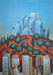 Ο ζωγραφικός πίνακας που συμπληρώνει τη σελίδα ("Λυκαβηττός") είναι έργο του Κωνσταντίνου Ντόντου.