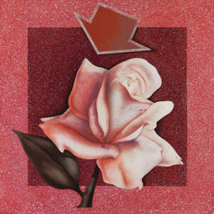 Ο ζωγραφικός πίνακας που συμπληρώνει τη σελίδα ("Τριαντάφυλλο και βέλος") είναι έργο του Χρίστου Καρά.