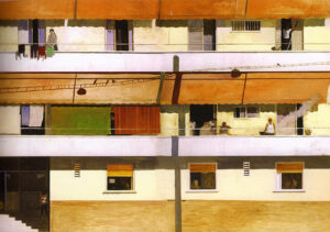 Ο ζωγραφικός πίνακας που πλαισιώνει τη σελίδα ("Πολυκατοικία", 2001) είναι έργο του Κώστα Παπανικολάου.