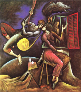 Τότε όμως δεν υπάρχει θέση παρά μόνο για τον πόθο που σιγά σιγά παροξύνεται σε πάθος. Το πρώτο τους φιλί δεν έχει την αθωότητα της αληθινής αγάπης, δεν γεννιέται από την «αφθονία της καρδιάς». Το αλλάζουν με τα μάτια ανοικτά, αφού το ζήτησε η Ζωή, κι όλα αντικειμενοποιούνται: «Είδε πολύ κοντά, απίστευτα κοντά και λοξά τα δυο της καστανοκίτρινα μάτια που του φάνηκαν αρπακτικά. Με το ένα του μάτι έβλεπε το ένα δικό της και με το άλλο το δεύτερο. Η Ζωή διατηρούσε την κυριαρχία της πάνω στα σφιχτά, πεπειραμένα χείλη της» (371-372). Βλέπει επί τέλους τα μάτια της Ζωής, μα είναι μάτια αρπακτικά. Αυτός είναι το αντικείμενό τους κι η λεία τους. Μα κι η δική του δράση έχει έναν παράξενο δυϊσμό – του λείπει το ενοποιητικό βλέμμα της καρδιάς. Ούτε ο άνδρας ούτε η γυναίκα δίνονται. Η Ζωή, με περίσσια πείρα, διευθύνει το παιχνίδι και χωρίς αμφιβολία κρίνει και συγκρίνει. Απέραντη μοναξιά τοϋ ερωτισμού. Μια διάλεκτος, μια τεχνική διαλέκτου, μα δεν υπάρχει κανείς για να επικοινωνήση. «Τα στόματα τους ενώθηκαν πάλι, γυρεύοντας κάτι να πάρουν το ένα απ’ το άλλο» (372). Κάτι να πάρουν, όχι να δοθούν.