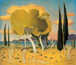 Ο ζωγραφικός πίνακας που συμπληρώνει τη σελίδα είναι έργο του Κωνσταντίνου Παρθένη.